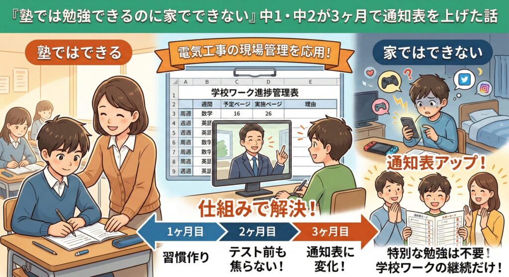「塾では勉強できるのに家でできない」中1・中2が3ヶ月で通知表を上げた話