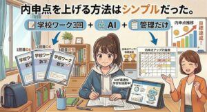 塾でテストの点を上げることはできます。でも内申点は、毎日の学校生活の積み上げでしか上がりません。ここを理解しているかどうかで、3年間の動き方が全然変わります。